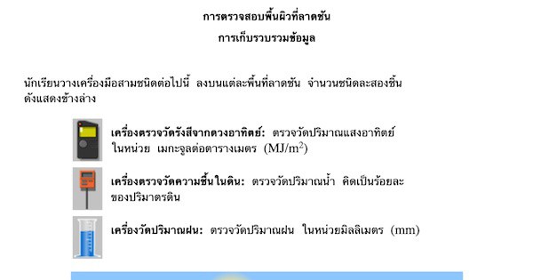 นักเรียนกลุ่มหนึ่งสังเกตเห็นความแตกต่างที่ชัดเจนของพืชที่ขึ้นบนพื้นที่ลาดชันสองด้านของหุบเขา แห่งหนึ่ง โดยบนพื้นที่ลาดชัน A พืชจะมีสีเขียวกว่า และมีจำนวนมากกว่าในพื้นที่ลาดชัน B